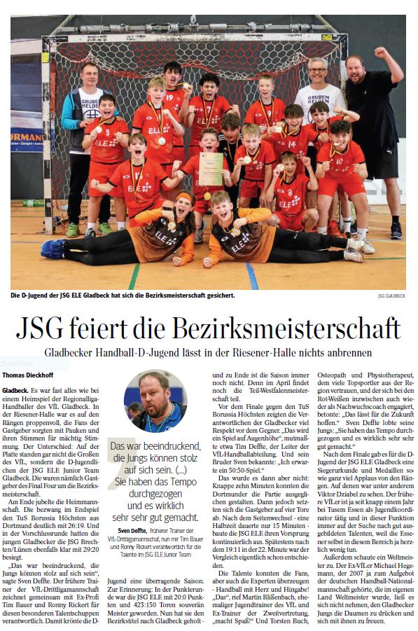 Es spielten: Johan Nattkämper, Jakob Seewöster (je 5), Noah Lange (4/1), Rune Pierenkämper (3), Konstantin Baxmann (3/1), Theo Große-Kreul, Haroun Guizani, Maximilian Wloka (je 2), Mohamed Kadi, Tom Maus, Luca Russo (je 1) und im Tor Simon Zankl.