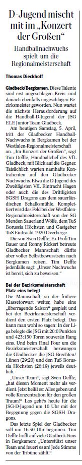 Es spielten: Yannick Rickert (10), Assim Guizani (9/1), Mats Deffte (7), Amir Joauadi (6), Jona Willebrand (4), Pepe Bauer, Jonas Deffte (je 2), Mathis Goste (1), Jannes Buch, Theo Kupilas und im Tor Ethan Marche und Brian Kinner.